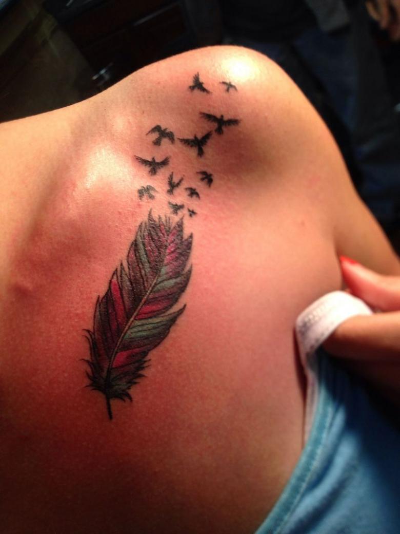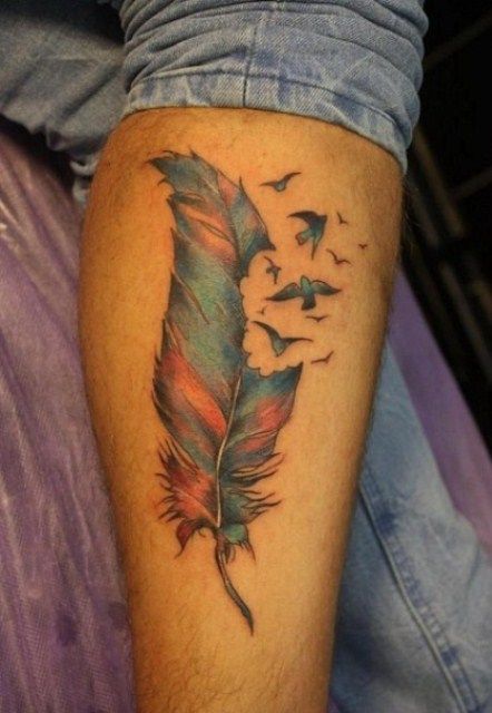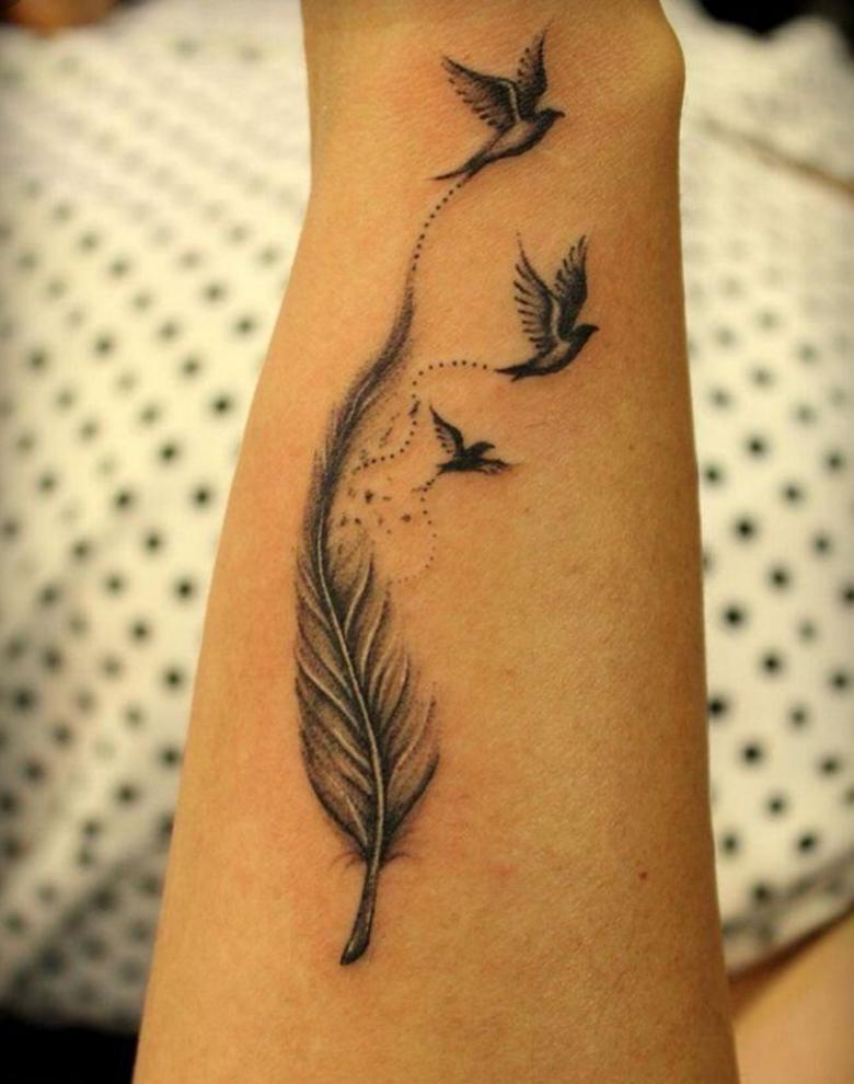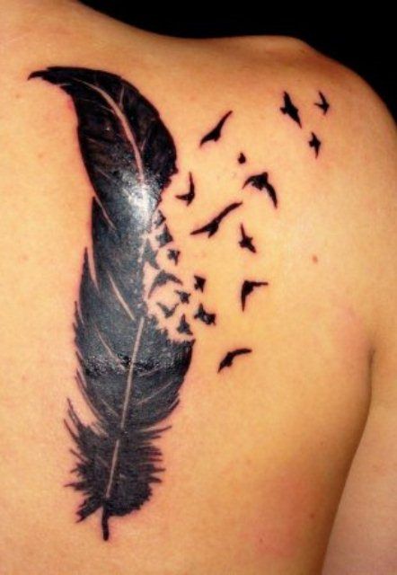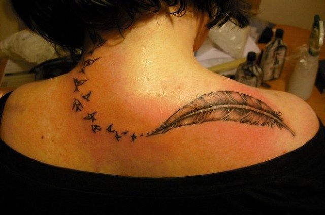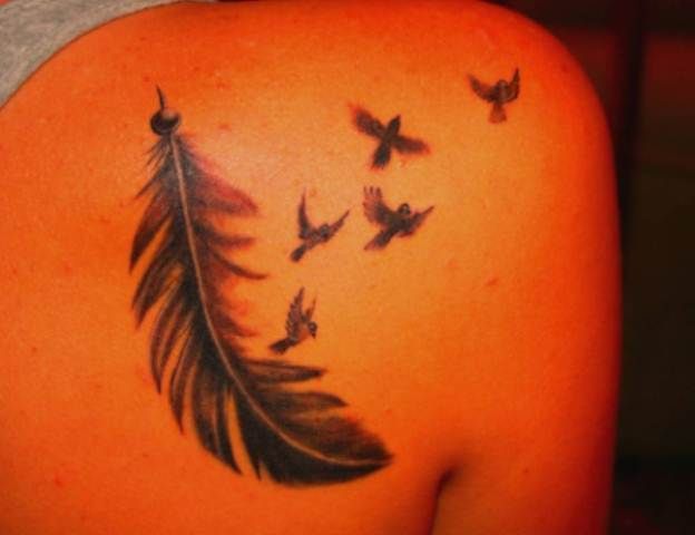 Remarque : les astrologues disent qu'un tatouage d'une plume avec des oiseaux signifie la protection contre les maladies et les malédictions.