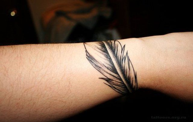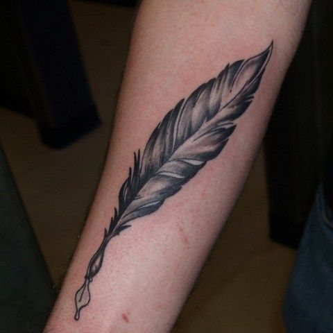 Les tatouages à la plume peuvent se décliner en plusieurs styles. Les images sous forme de tatouages indiens traditionnels seront une excellente option pour le sexe fort. Ils portent les qualités d'un guerrier né : courage, audace et détermination. Ils sont souvent réalisés dans des couleurs sombres et sont monochromes. Ce tatouage de plume est très joli sur le bras, surtout s'il est situé de la main au coude.