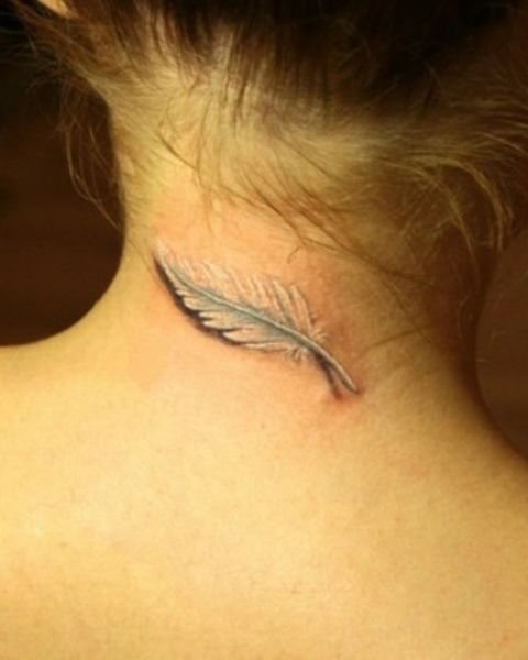 Habituellement, une seule plume est représentée dans le tatouage. Il peut s'agir d'une plume de phénix, d'aigle, d'autruche, de hibou, de paon et d'autres oiseaux. Le tatouage de plumes sur le cou est très élégant. Cette image est inhérente aux personnes libres de pensée, créatives et ouvertes d'esprit.