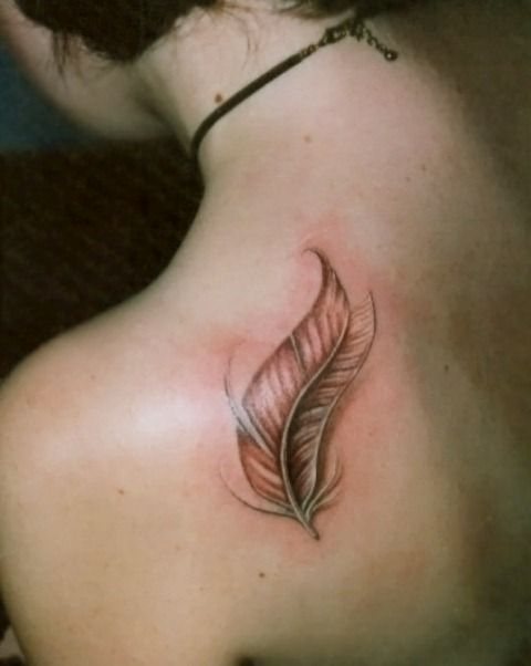 Croquis d'un tatouage temporaire de Plume pour femme sur l'omoplate