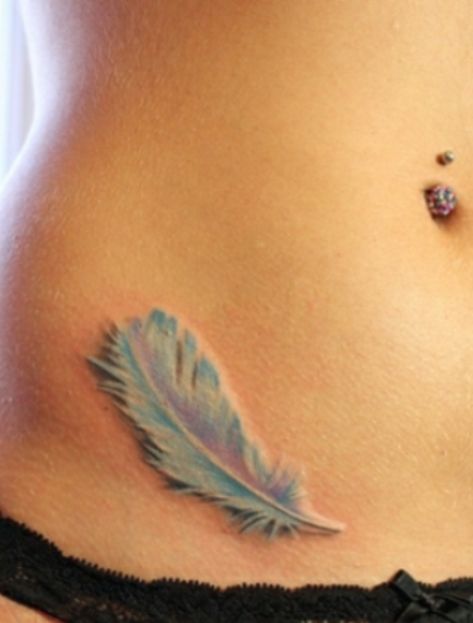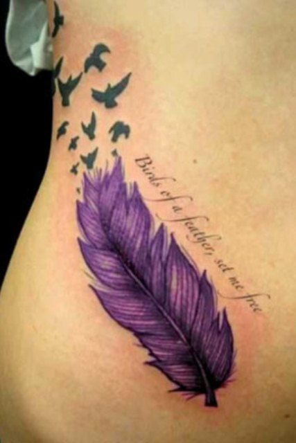 Un tatouage de plume sur l'estomac est très joli. Surtout si elle est réalisée dans des couleurs vives et si elle présente une composition avec des oiseaux en vol.