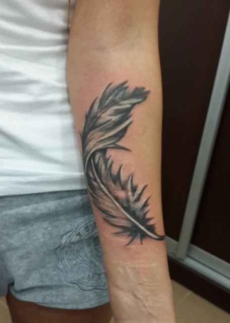 Esquisse d'un tatouage de plume sur l'avant-bras pour les hommes