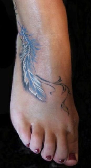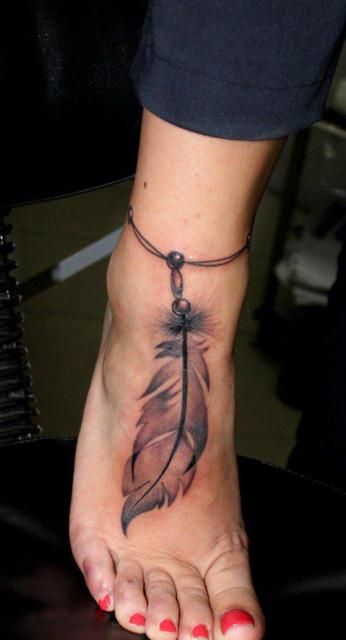 Esquisse d'un tatouage de Plume sur le pied d'une femme