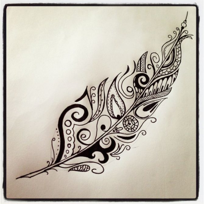Tatouage d'une plume. Signification, symbolisme, croquis.