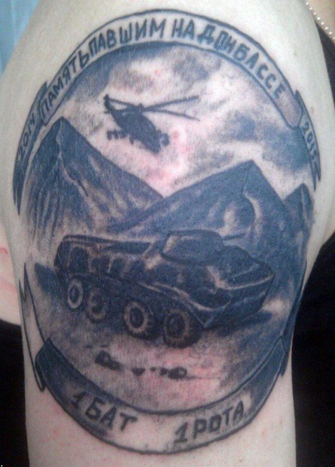Ceux qui servent en mer s'empiffrent de requins, de drapeaux de la marine autour de leurs avant-bras. Ceux qui sont passés par le Caucase privilégient le scorpion, la présence de l'aiguillon relevé vers le haut révèle que l'on a participé à une campagne de combat. Les dragons symbolisent les brigades de défense du pays.