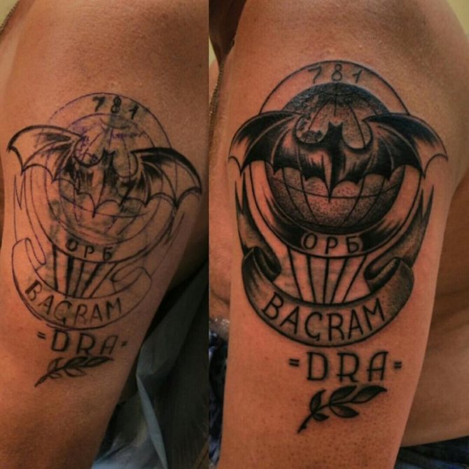 Par tous avec le temps le tatouage militaire peut perdre son aspect attrayant, et il devra être ajusté, il est préférable de le tenir dans le même salon de tatouage, car un spécialiste qui a travaillé précédemment sur sa création, examine minutieusement sa création et peut rapidement faire des réparations.