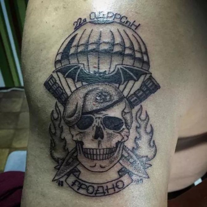 Les temps ont changé, maintenant la variété des tatouages militaires présentés en nombre incroyable. En règle générale, ils désignent les unités militaires, les années de service et les troupes dans lesquelles le service passe ou a passé.