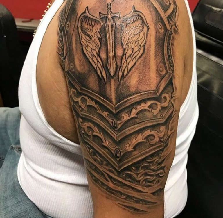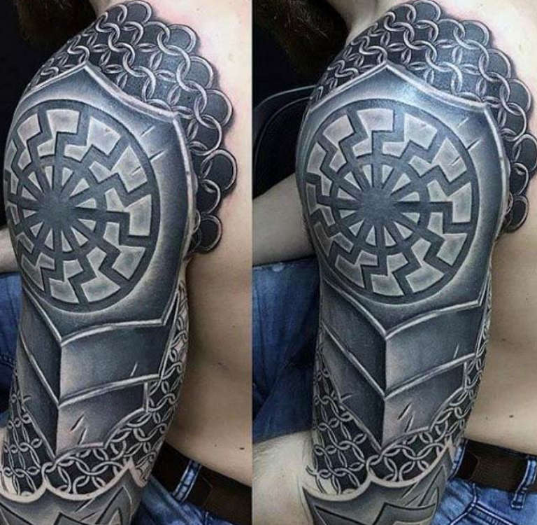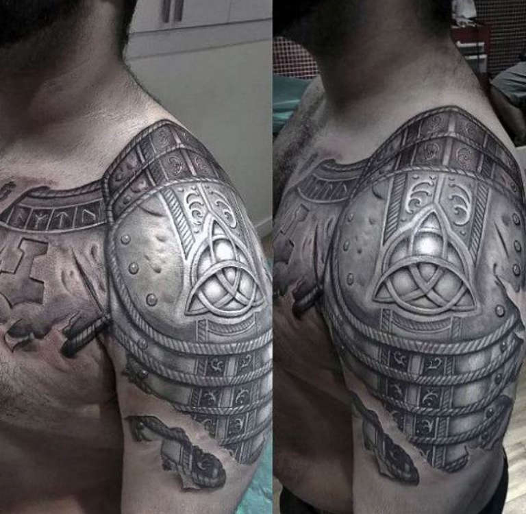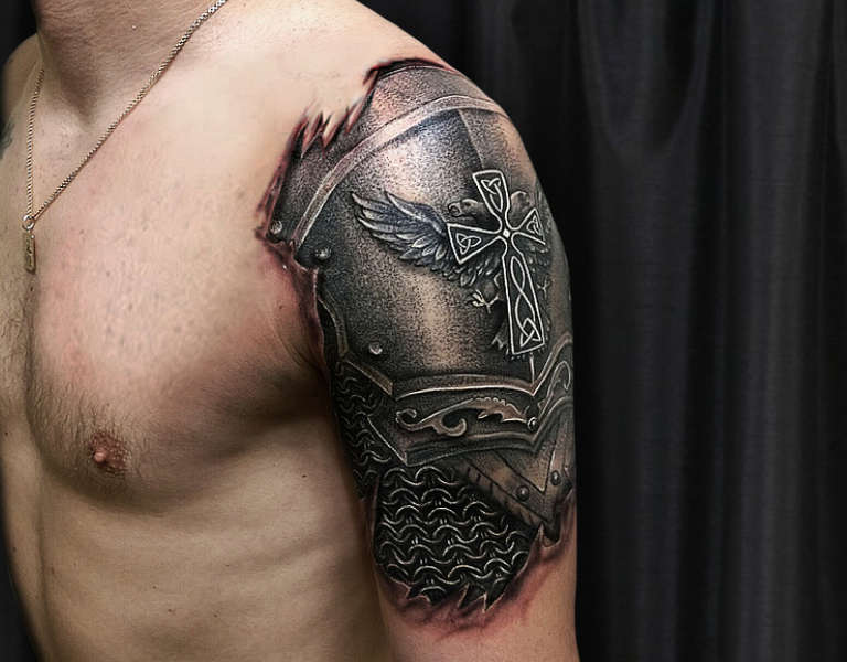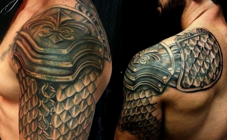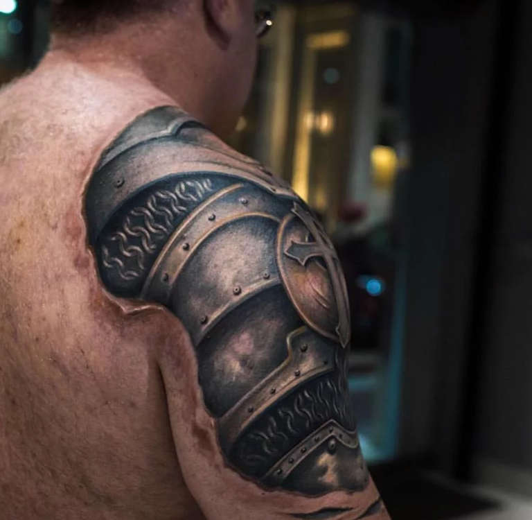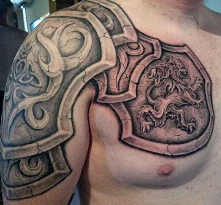 Armure d'épaule - Un tatouage protecteur qui vous protège des problèmes et de l'adversité, une source de force physique et de confiance en soi.