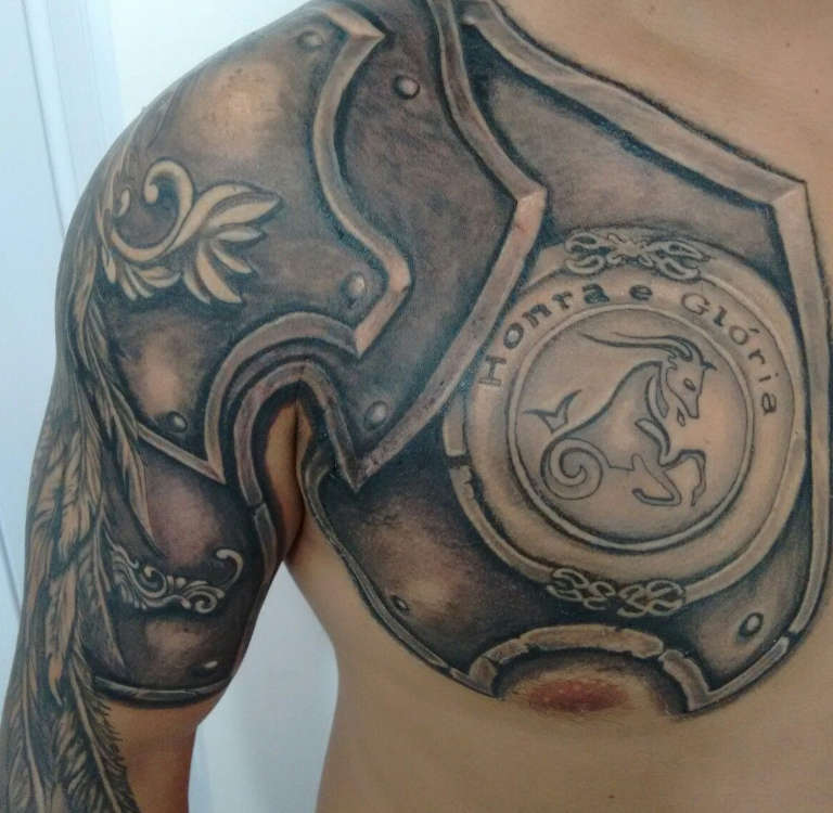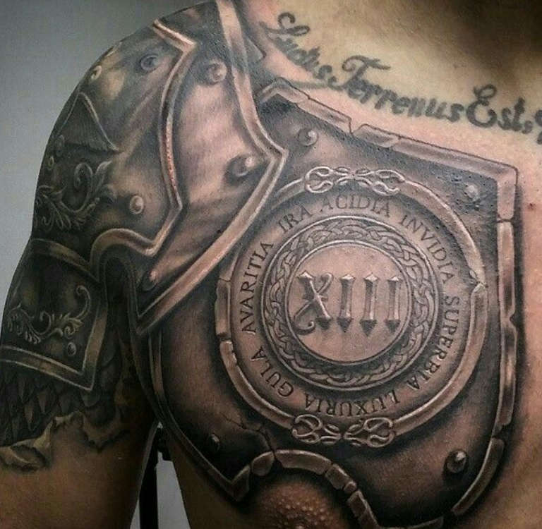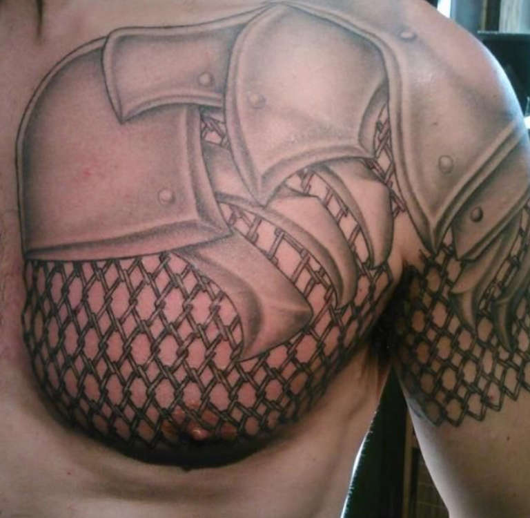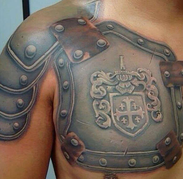 Sur la poitrine, ces tatouages seront un talisman contre les risques et les dangers pour la santé et la vie. Les détails clairs et la représentation intelligente des ombres et de la lumière rendront l'armure d'imitation aussi proche que possible de l'original.