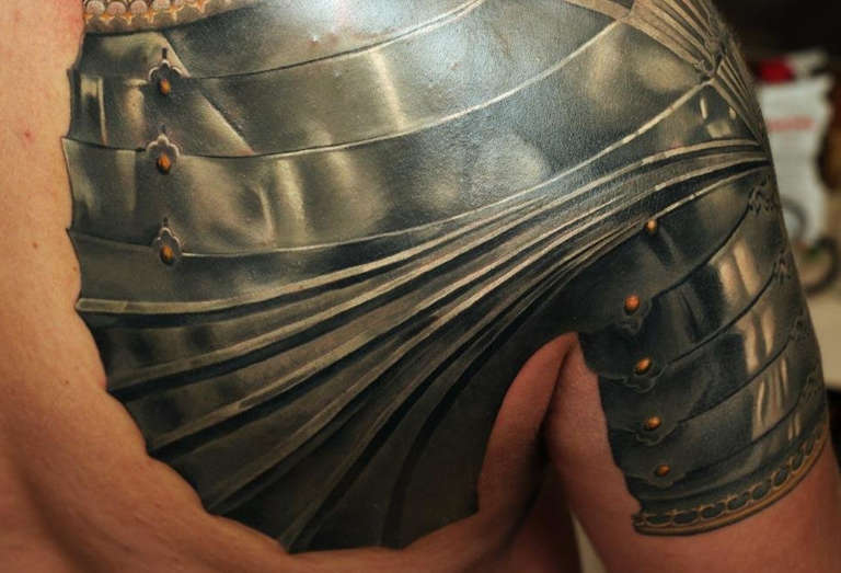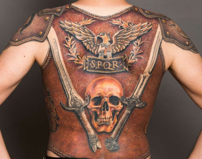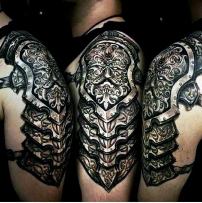 Un tatouage sous forme d'armure ou d'éléments de celle-ci sur le dos est une idée populaire, qui a une certaine signification - protection contre les agressions extérieures, confiance en soi, croyance en sa vérité et sa force.