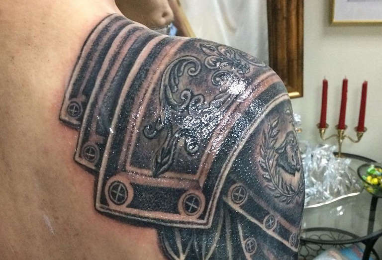 Si vous choisissez de vous tatouer une armure romaine, il existe de nombreuses options : du pagne et de la massue à la cuirasse et à l'épée en une seule pièce.