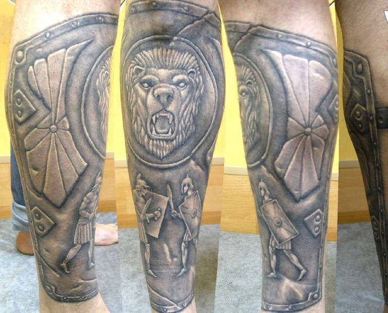 Il est intéressant de noter que les armures de lats ont commencé à être produites par les Romains, mais au début du Moyen Âge, ces technologies ont été oubliées pour une raison quelconque, et le développement des armures de protection a fait un pas en arrière. D'ailleurs, l'armure de gladiateur est souvent choisie pour le tatouage. Les racines de l'histoire des gladiateurs remontent aux traditions des rites funéraires étrusques. Les sacrifices habituels ne leur paraissaient apparemment pas assez spectaculaires. C'est pourquoi deux esclaves (dans certains cas, même des hommes libres) étaient choisis pour se battre à mort sur la tombe du défunt - à la fois pour sacrifier et pour amuser le peuple.