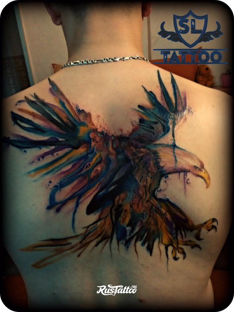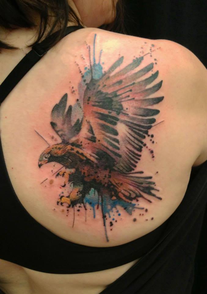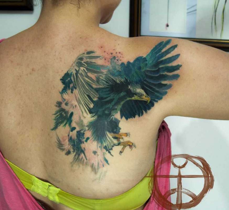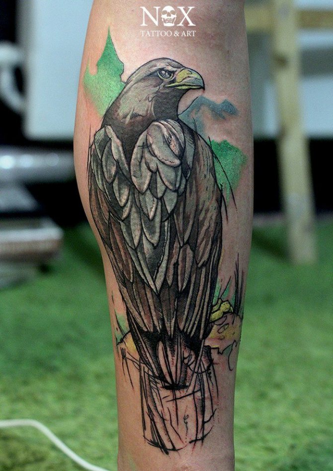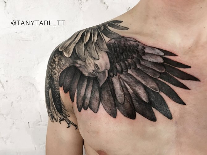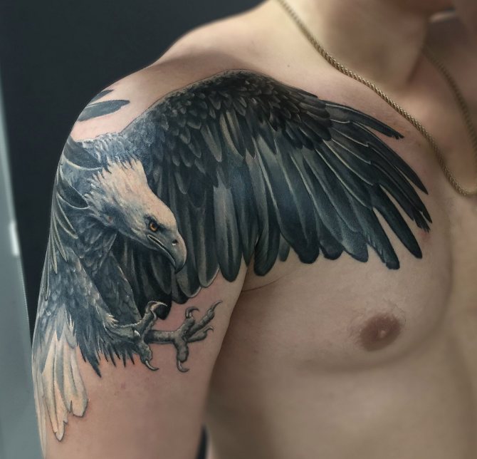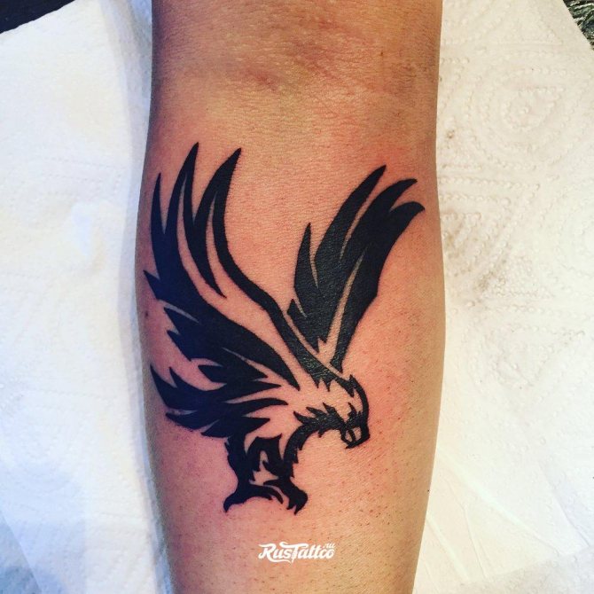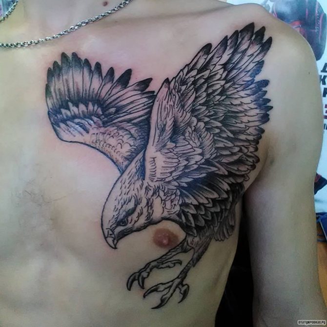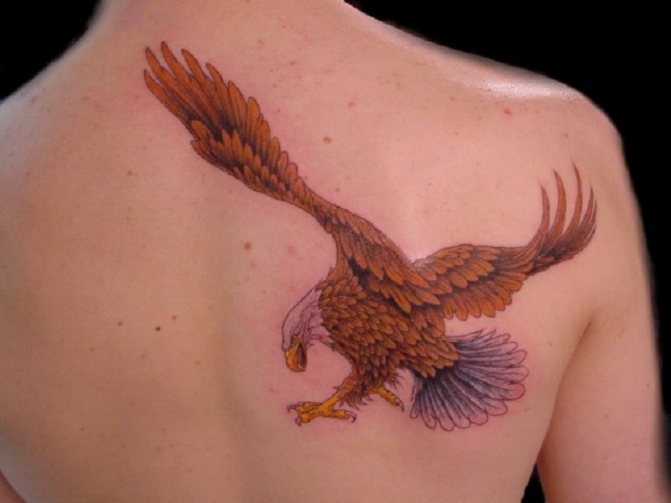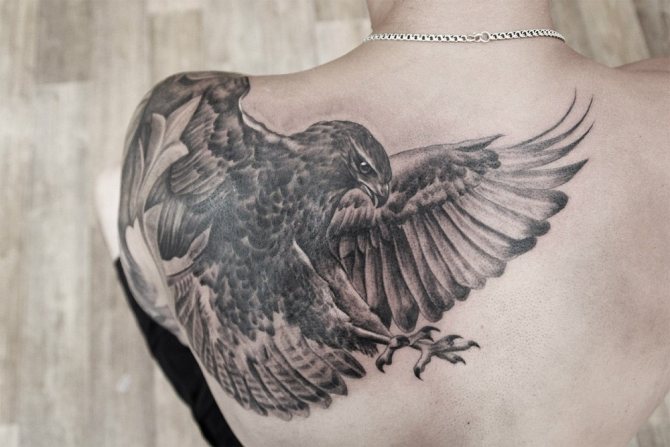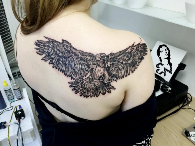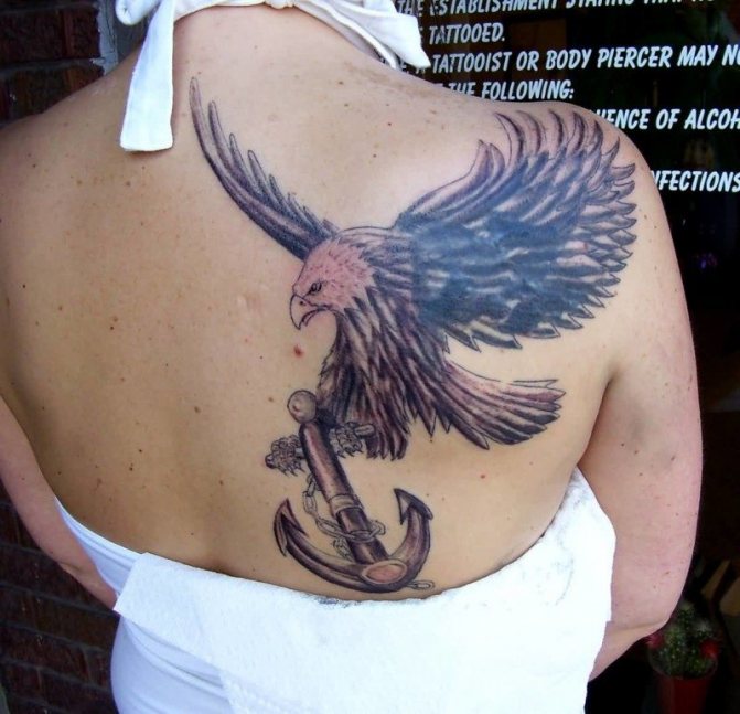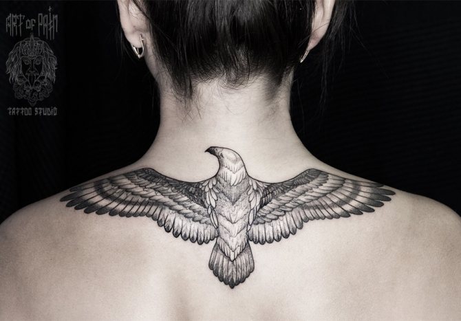 Les propriétaires d'un tatouage d'aigle sur le dos - des personnes qui cherchent à amener toute affaire à la perfection et ne s'arrêtent pas sur l'acquis. Ce dessin de tatouage convient aussi bien aux garçons qu'aux filles. L'image au dos, qui représente un aigle assis, indique que vous êtes tout à fait prêt à prendre une action décisive entraînant un changement important.