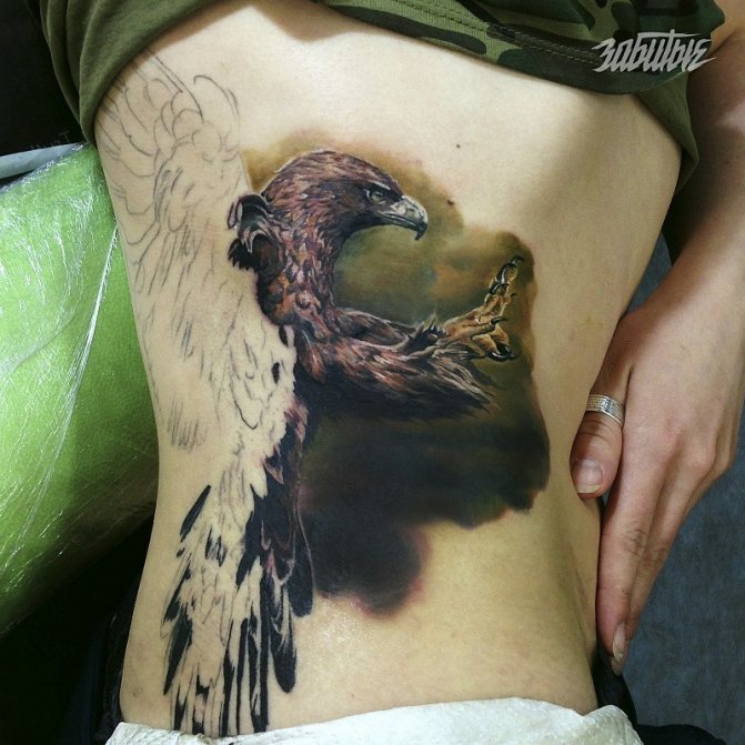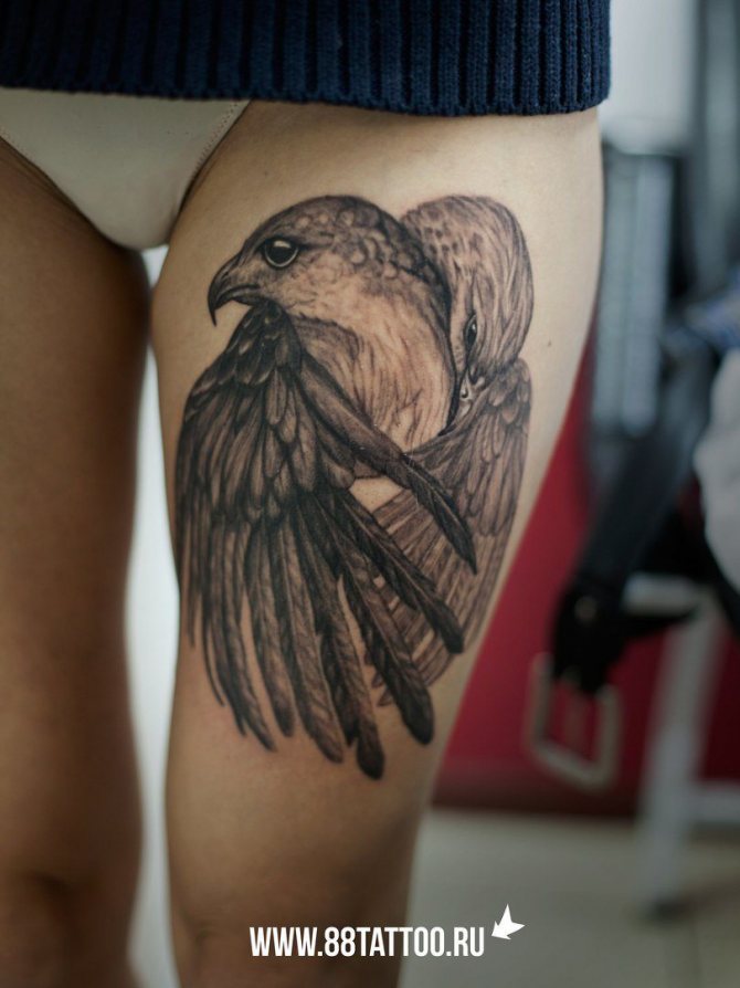 Le monde change. Avec l'urbanisation de la société, les préférences du beau sexe évoluent également. Les filles et les femmes, qui se caractérisent également par des qualités telles que la noblesse et la détermination, ne sont pas indifférentes au tatouage de l'aigle fier. L'image d'un aigle dans un nid symbolise la protection du foyer familial et l'amour. Ce tatouage est choisi comme un talisman.