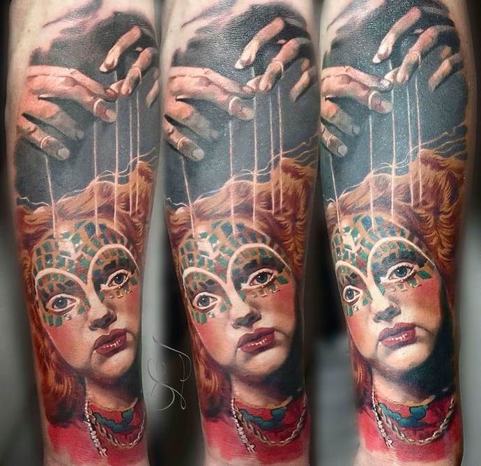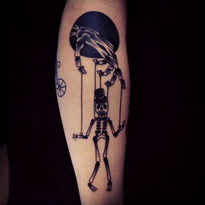Tatouage d'un marionnettiste sur le bras