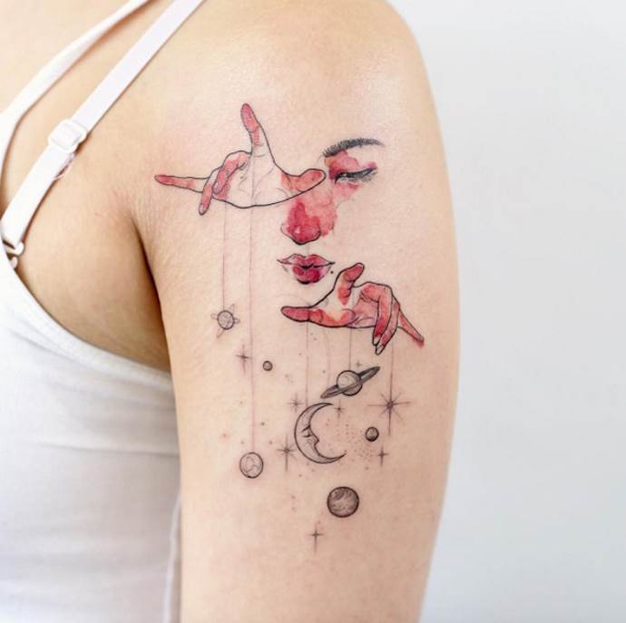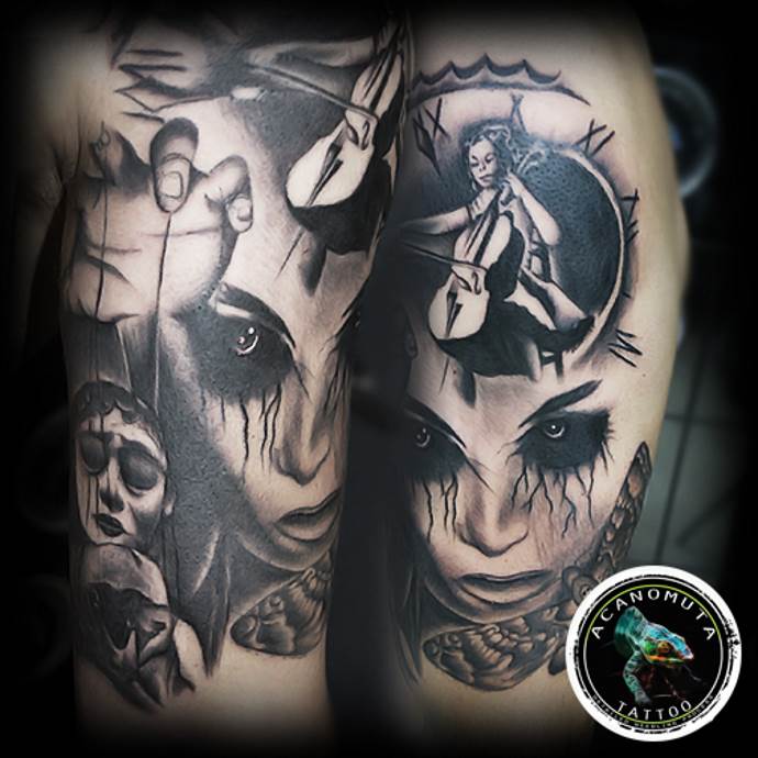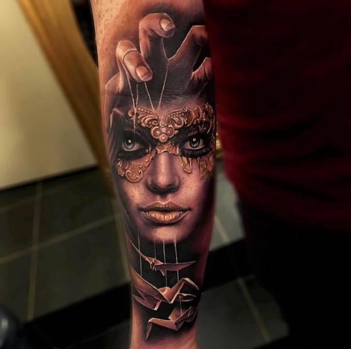 Ces tatouages sont généralement préférés par les hommes. Ils soulignent la détermination et la volonté et constituent en même temps une œuvre d'art corporel originale. Les dessins à grande échelle se transforment en un bras de tatouage, c'est pourquoi il est parfois judicieux de superposer un ancien tatouage. En outre, l'image des poupées et des marionnettistes est un sujet unique et rarement vu.
