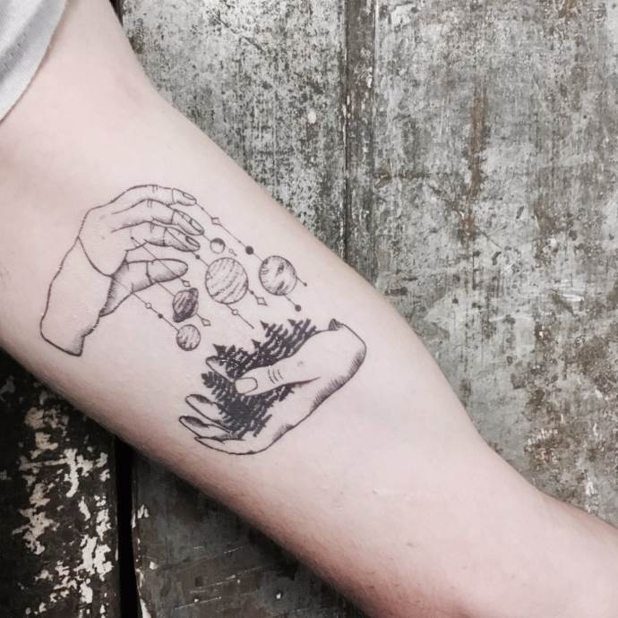 Un tel tatouage peut avoir des significations différentes, mais il a un point commun : le porteur est convaincu que son destin est scellé et que tous les événements de la vie sont écrits d'en haut. Cette personne croit que rien ne peut être changé, elle suit donc le courant et ne montre aucune résistance.