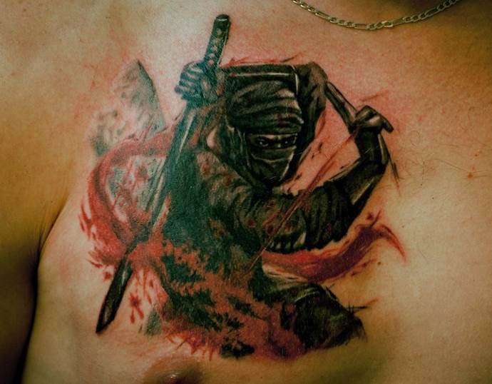 Dans le tatouage ninja a beaucoup de significations, en sachant que vous pouvez dessiner un portrait psychologique du propriétaire de l'image.