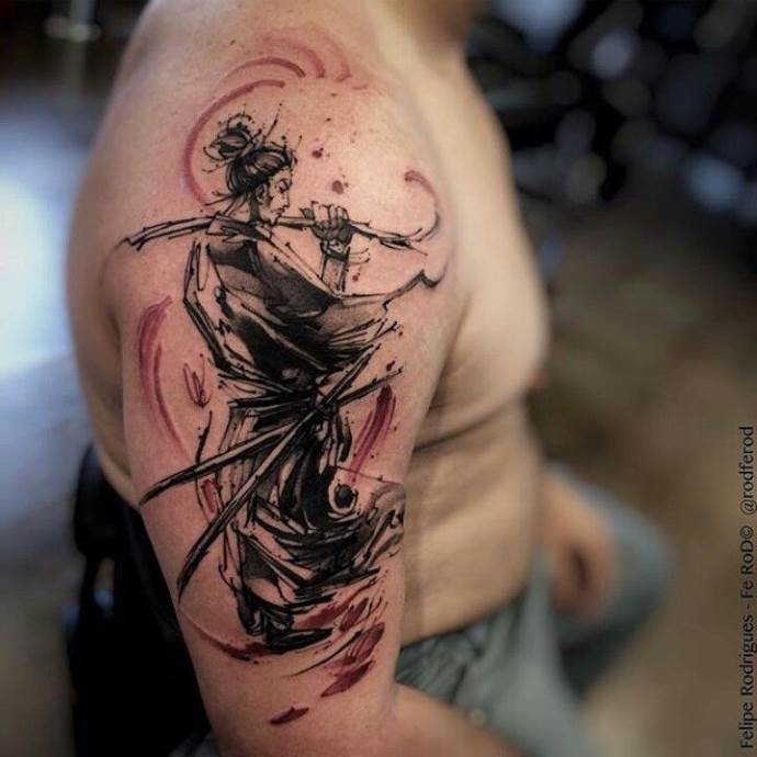 Il ne faut pas penser qu'un samouraï n'est pas un tatouage approprié pour les filles. Il suffit de rappeler qu'il n'y a pas si longtemps, des études approfondies ont été menées au Japon. Au cours de celles-ci ont été étudiés les ADN des guerriers morts enterrés après une grande bataille qui a eu lieu en 1580. Il a été constaté que près d'un tiers des guerriers étaient des femmes. Ce qui indique que les hommes n'étaient pas les seuls à se battre au pays du Soleil Levant.