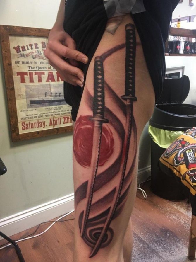 Le tatouage d'un samouraï avec un sabre est souvent visible sur le corps des athlètes. Le plus souvent, les épéistes préfèrent avoir ce motif sur leur corps.