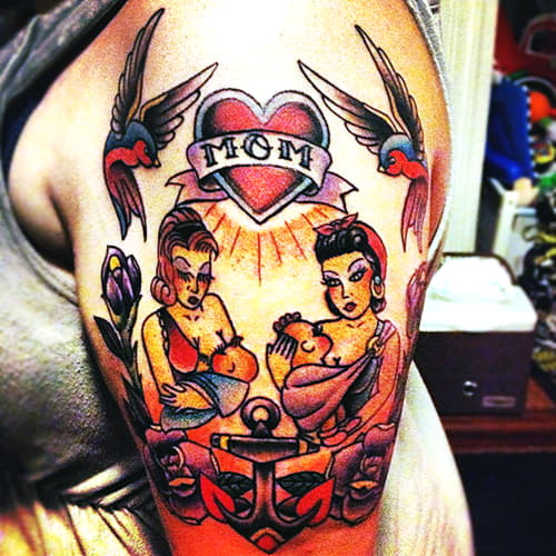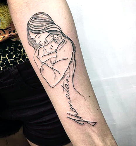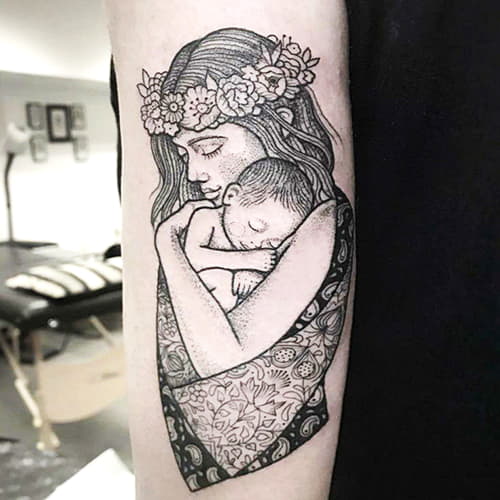 Le tatouage "Mère et enfant" est réalisé par des maîtres dans plusieurs styles.