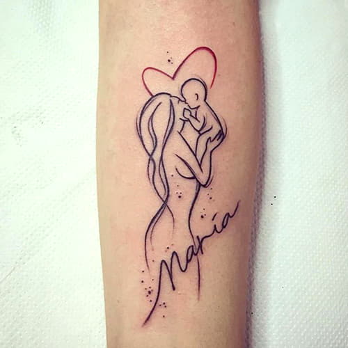 Ceux qui veulent une photo "légère" et élégante de la mère et de l'enfant conviendront au minimalisme. L'objectif est d'avoir le moins de lignes possible sur la peau. Le design est facile à comprendre et élégant.