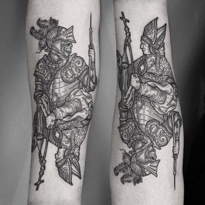Les chevaliers étaient des guerriers professionnels. D'où une autre signification armure de tatouage - combats.