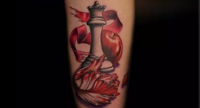 Les significations philosophiques sont véhiculées par des dessins en noir et blanc ou en couleurs tamisées. La zone de l'épaule, de l'omoplate, du dos ou de la cuisse est utilisée pour ces croquis. Une composition complète est imprimée sur le tibia ou le mollet. Cela permet d'attirer l'attention sur l'essence du dessin plutôt que sur ses nuances sensuelles.