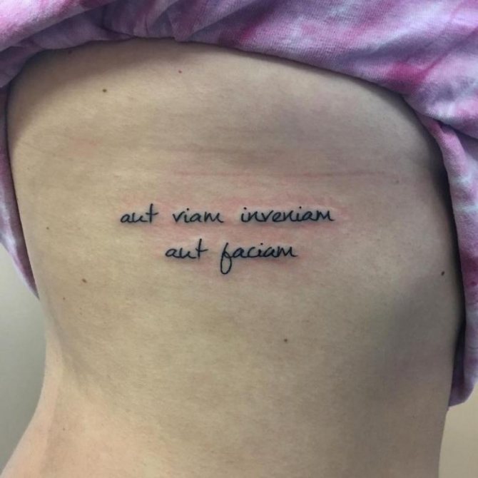 Le choix de l'emplacement du tatouage doit être fait de manière très judicieuse. Non seulement l'image durera toute une vie, mais la phrase peut être une source de problèmes si elle est mal interprétée dans certains milieux. S'il ne s'agit pas d'un simple dessin, mais d'une véritable amulette de motivation, il est préférable de ne pas la placer à un endroit bien visible. Que le talisman sous forme de tatouage d'une inscription latine motive dans un endroit secret, sans dissiper l'énergie des mots magiques.