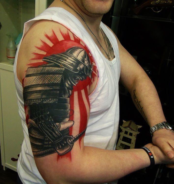 Pour un tatouage de bras, il faut donner du crédit aux dessins de nature verticale. Il s'agit souvent de l'image d'un samouraï avec un sabre levé ou d'un guerrier avec un dragon, qui est un personnage inhérent à la culture japonaise. Les variations possibles comprennent un disque solaire, une maison japonaise et d'autres exemples.