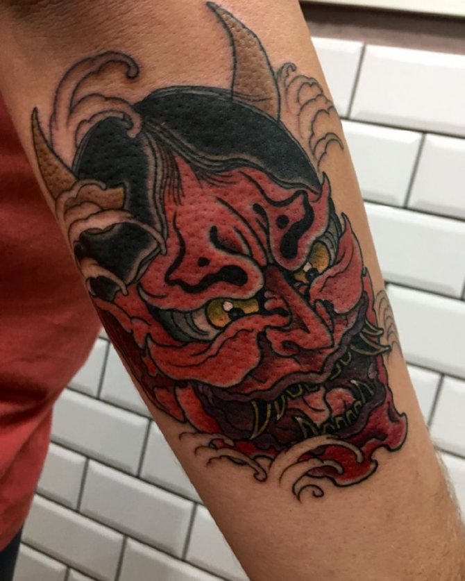 Le tatouage du masque de kitsune est également un tatouage populaire chez les femmes. Ce démon est représenté comme un renard et est destructeur pour les hommes. Les Kitsune peuvent se transformer en la plus belle des femmes et ensorceler un homme, qui fera tout ce qu'elle lui dira de faire. Très souvent, cela se termine par la folie. Mais la renarde rusée elle-même ne sera probablement pas reconnaissante envers qui que ce soit, elle obtient toujours ce qu'elle veut et disparaît ensuite.