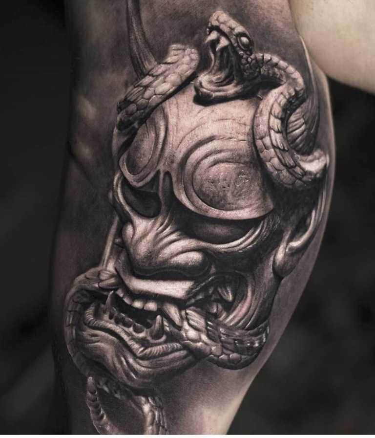 Le masque de samouraï est une autre tendance populaire dans les tatouages japonais. Pour les hommes, c'est le meilleur tatouage car il signifie la force, la puissance et la volonté d'engager le combat à tout moment.