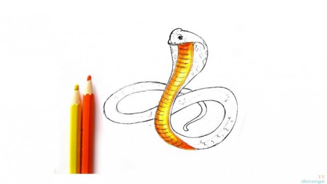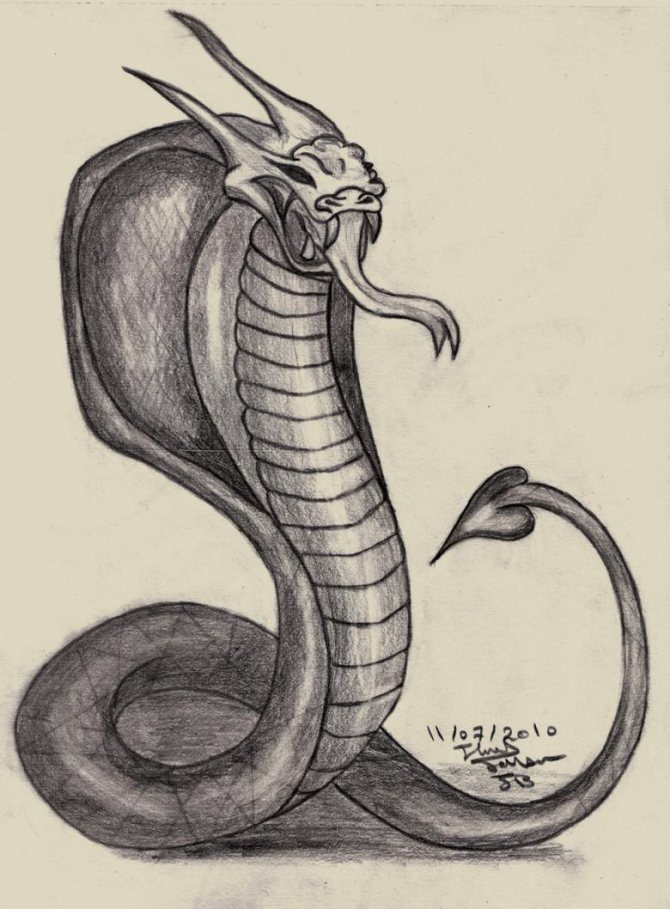 Les enfants d'âge scolaire trouveront intéressant d'apprendre à dessiner un cobra. C'est un serpent dangereux pour l'homme qui a une forme de tête caractéristique encadrée par un "capuchon". Le serpent de cette race se montre dans une posture de combat, avertissant ainsi son adversaire qu'il est prêt à le ronger de ses dents empoisonnées.
