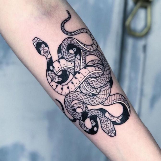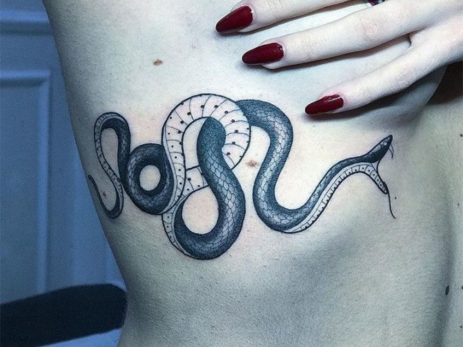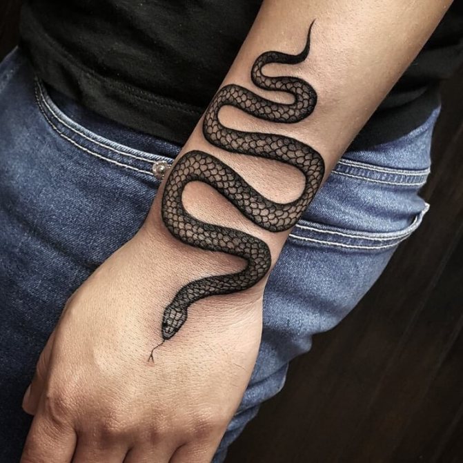 Et dans les temps anciens, les tribus croyaient qu'un tel animal pouvait provoquer la pluie, sauvant ainsi les champs de la sécheresse. En vénérant le serpent, les Amérindiens croyaient que le prédateur pouvait arrêter une tempête. En Égypte, la déesse de la fertilité était associée au cobra. Le tatouage de serpent pour les filles symbolise la féminité et la sexualité.