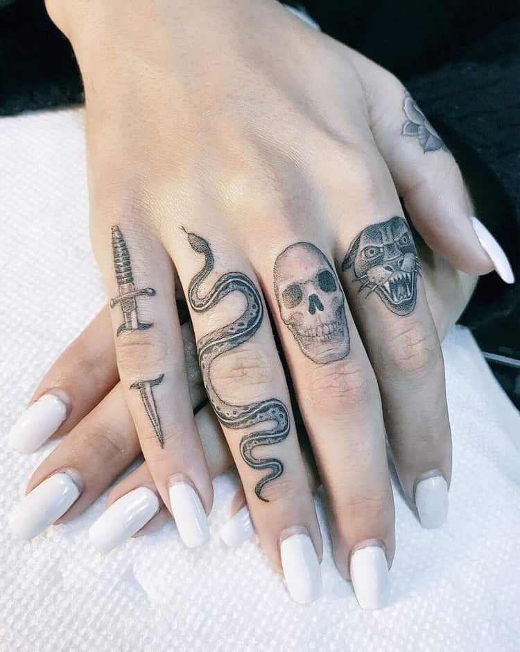 Le tatouage du serpent noir indique que le porteur a traversé une série d'épreuves extrêmement difficiles, comme la maladie, mais qu'il a pu surmonter toute l'adversité. Très souvent, le tatouage de serpent noir orne la main et est réalisé dans un format minimaliste. Certaines instances de tatouage de serpent semblent beaucoup plus réalistes en noir que dans la version colorée.