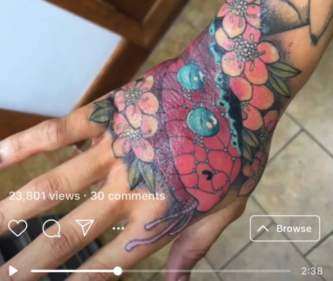 Dans les traditions orientales, le tatouage de serpent aurait un traitement similaire à celui du tatouage de dragon.