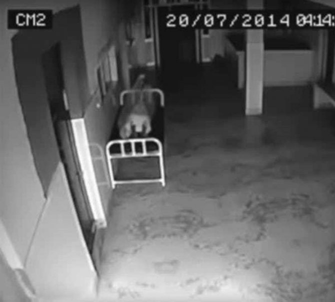 Voici une autre photo prise par une caméra de surveillance de l'hôpital. C'est comme si une ombre masquée s'était allongée sur un lit vide dans le couloir. Mais selon le personnel, personne n'était sur le lit à ce moment-là ! Et vous ne pouvez pas porter un mackintosh dans les couloirs de l'hôpital. Se pourrait-il que la Mort reprenne des forces après un combat contre les médecins, dans lequel ces derniers ont été victorieux ?