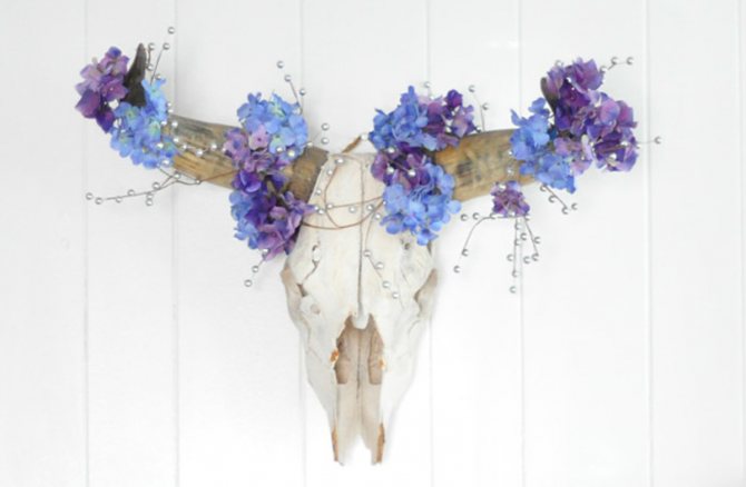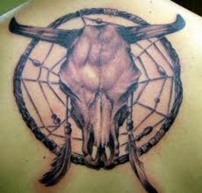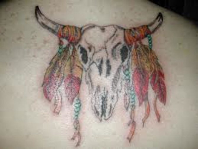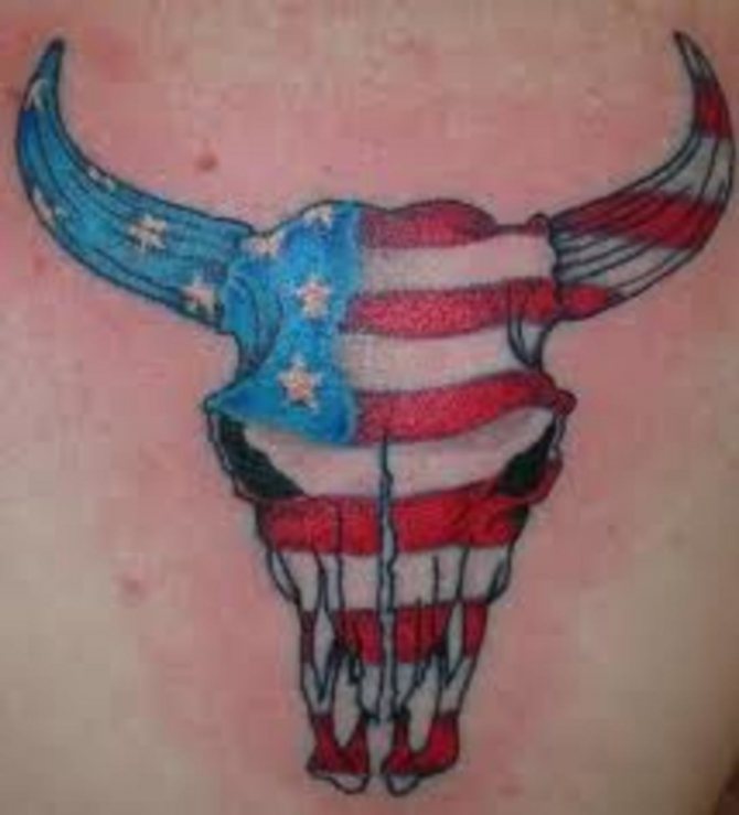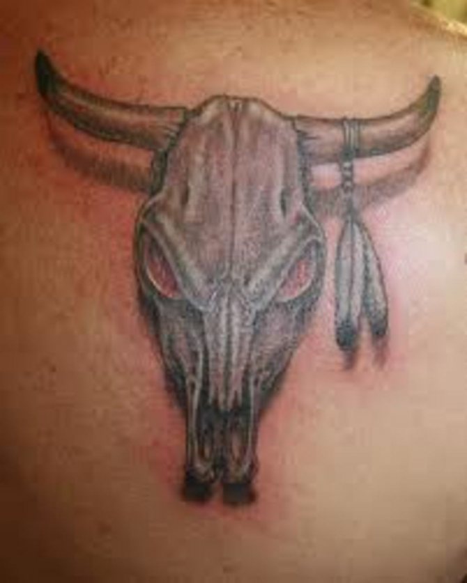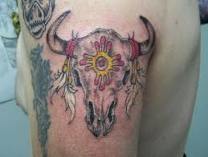Dans la culture des Indiens d'Amérique du Nord, le crâne de cet animal avait une signification positive. Très souvent, cette image symbolisait la prospérité dans la vie. Le crâne du taureau était également utilisé dans les rituels amérindiens. Le crâne était souvent utilisé comme un symbole de gratitude envers les dieux. Avec le crâne du taureau, le logement décoré, car on pensait qu'il pouvait protéger contre la détérioration et les mauvais esprits. Certaines tribus croyaient également que le crâne était un symbole de fertilité, ainsi que de prouesses sexuelles.