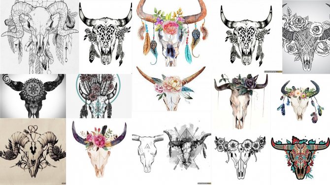 Parmi les nombreuses variations de tatouages qui existent aujourd'hui, on trouve souvent des tatouages en forme de crâne de taureau. Il faut dire que dans la majorité des cas, le crâne de l'animal donné a une signification qui est liée à la mort. Dans ce cas, il se produit un tatouage à signification positive. En général, étant donné que ces dernières années, les tatouages de ce type sont fréquents, la signification négative passe au second plan. Essayons de comprendre la signification du tatouage de tête de taureau.