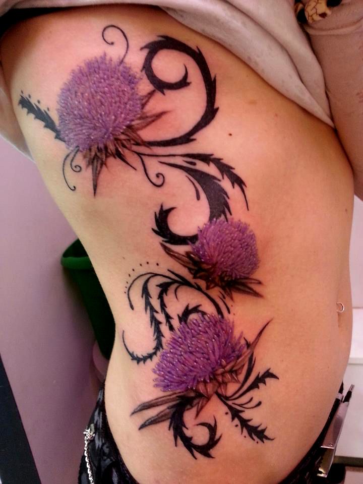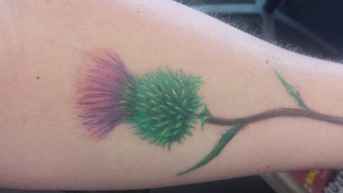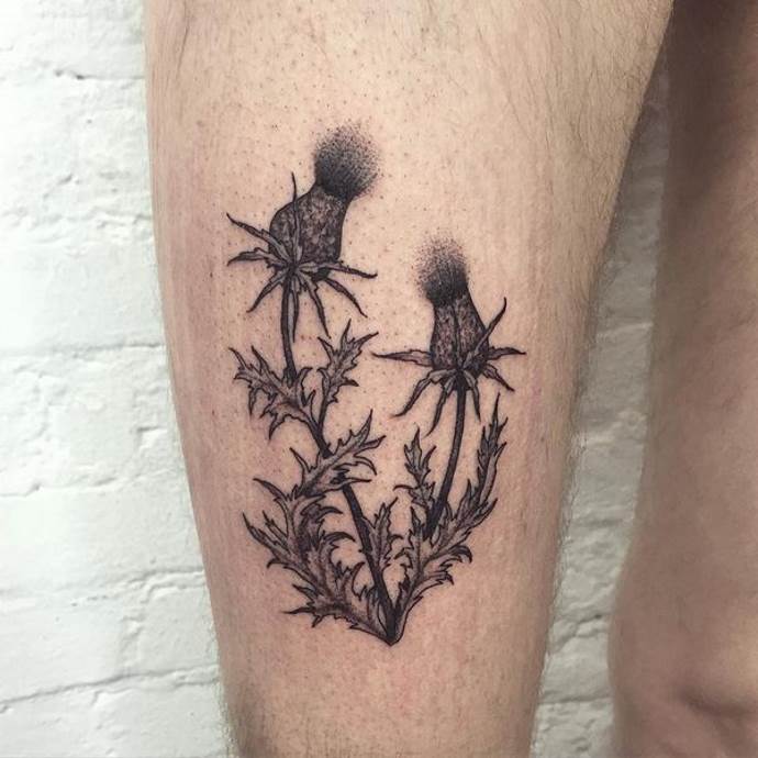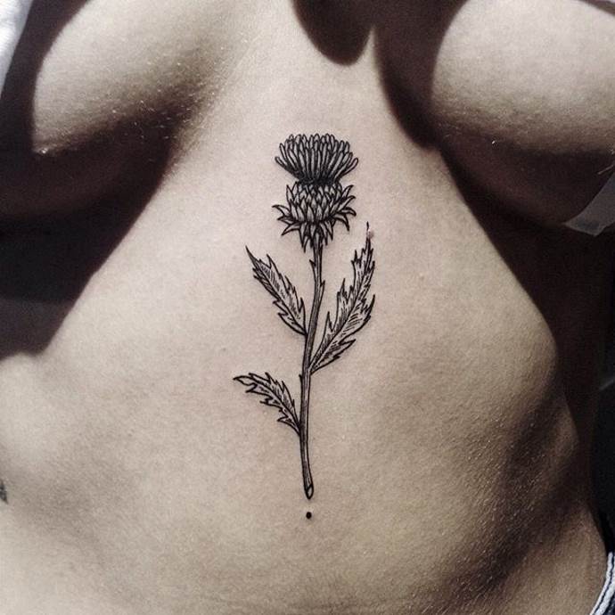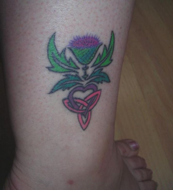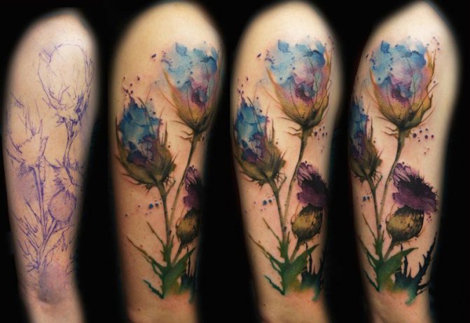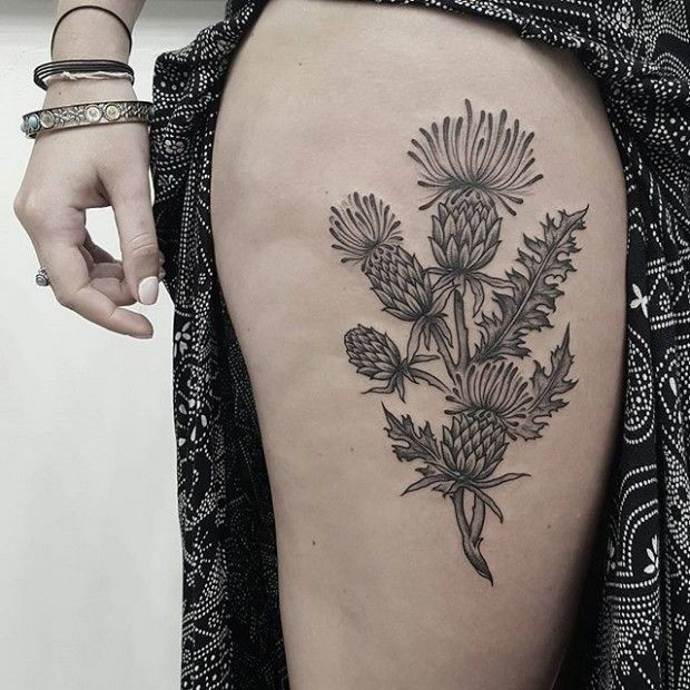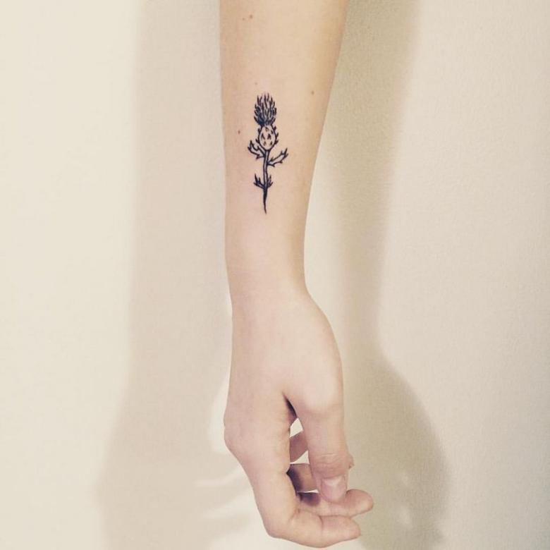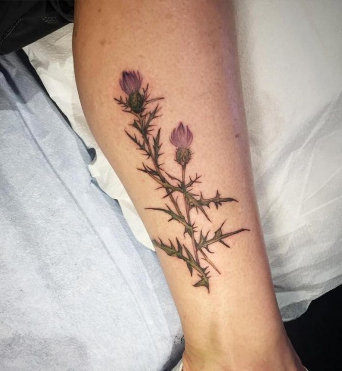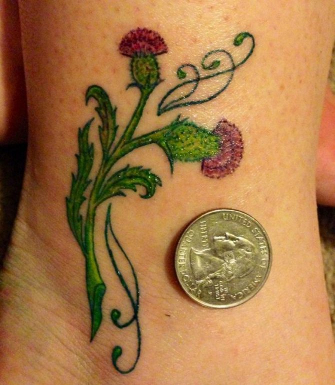 Il est connu que le chardon est capable de se débarrasser du mal. Et donc faire le tatouage avec une telle fleur spéciale, la femme peut dire qu'elle veut toujours recevoir une victoire sur le mal dans toutes ses manifestations.