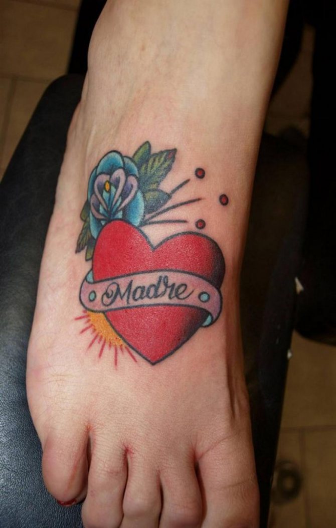 - Le plus courant est le tatouage de cœur avec un nom à l'intérieur. Le texte peut se trouver à l'intérieur du cœur ou dans un cadre spécial pour les enfants. inscription. Ces tatouages étaient généralement réalisés par des marins. Ils ont inscrit le mot "Mother" dans le cœur, car cette femme les attendait toujours. Certains ont créé des tatouages avec les noms des êtres chers, mais peu de filles attendaient les marins, alors ils ont cessé de les faire.