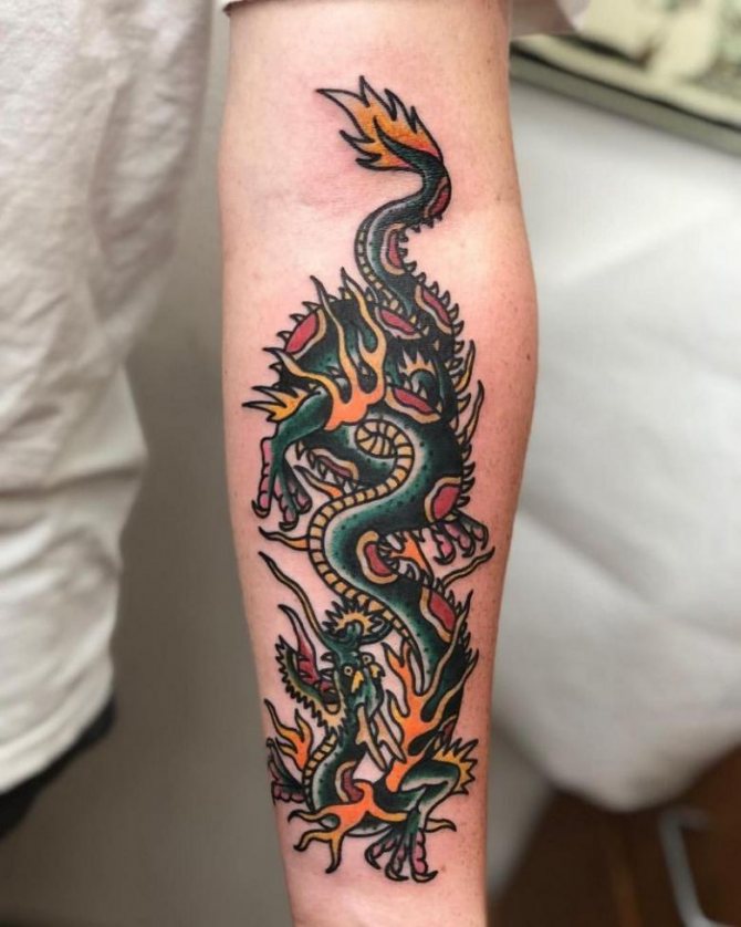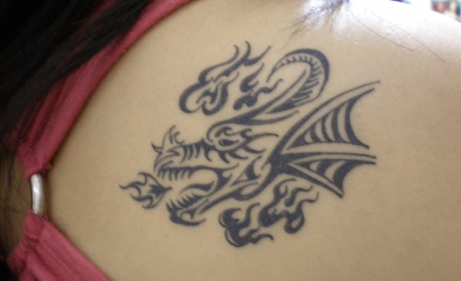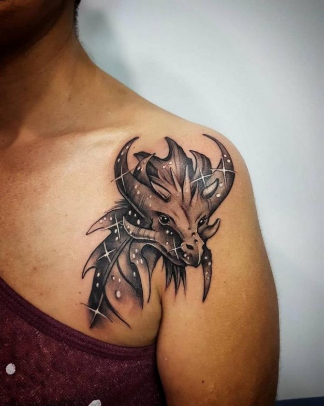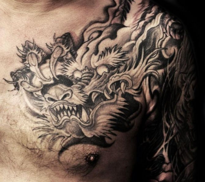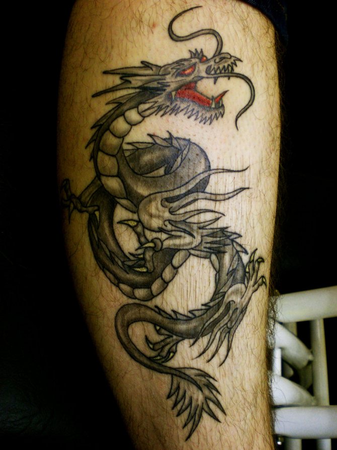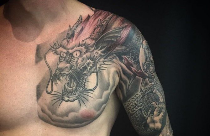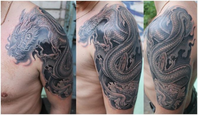 Image d'un monstre mythique sur cette partie du corps Plus souvent choisi par les hommes. Les filles, si et le dragon farci tatouage sur l'épaule, sous la forme d'une petite image. Et les gars font du tatouage, en commençant par l'avant-bras et en allant vers la poitrine ou l'omoplate.