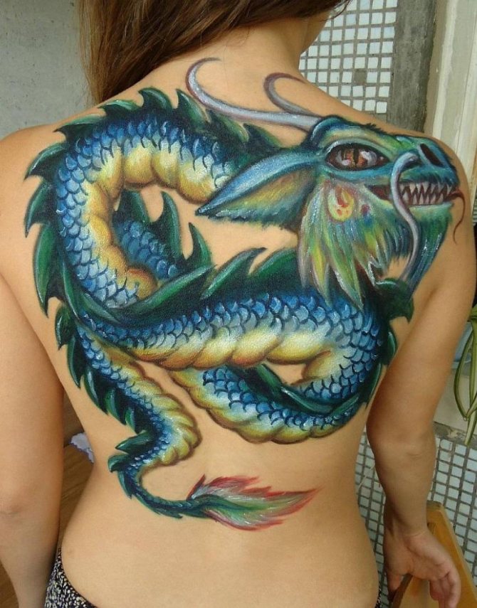 Tant les hommes que les femmes aiment mettre l'image du monstre ailé sur leur corps. Pour les femmes, le dragon représente le courage, la force et la protection.