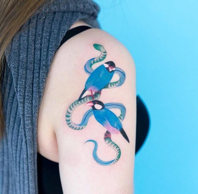 Le tatouage peut être de grande ou de petite taille. Elle peut être placée sur une partie visible du corps ou cachée, comme c'est le cas pour les talismans ou les amulettes. Le tatouage, outre sa signification commune, a une signification secrète connue uniquement de la personne qui le porte. Le serpent, dans ses différentes incarnations, est populaire auprès des filles en tant que symbole des principales qualités féminines.