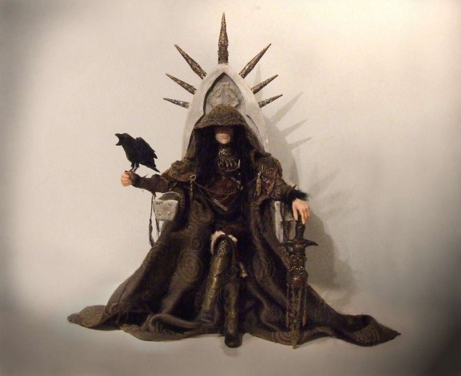 Des images d'Odin avec un ou deux corbeaux sur ses épaules ont survécu - pour les Vikings, c'est un symbole de sagesse, de conscience et de domination du dieu suprême. On trouve des références aux corbeaux d'Odin dans les sagas, les Eddas aînées et jeunes et le Cercle de la Terre.
