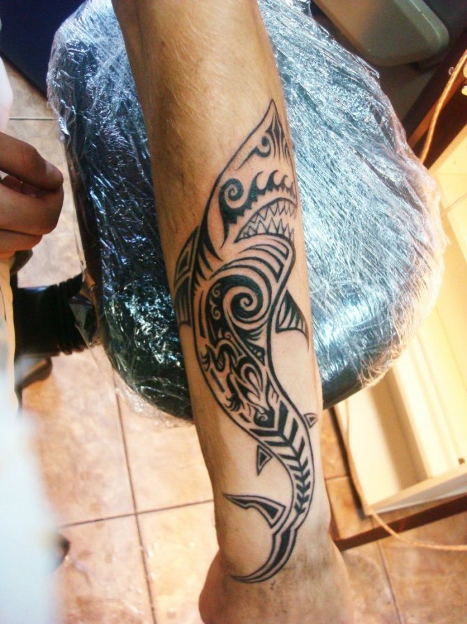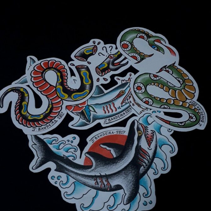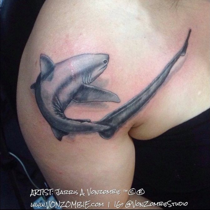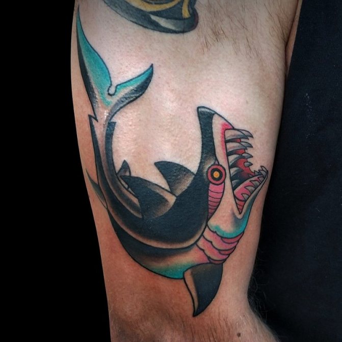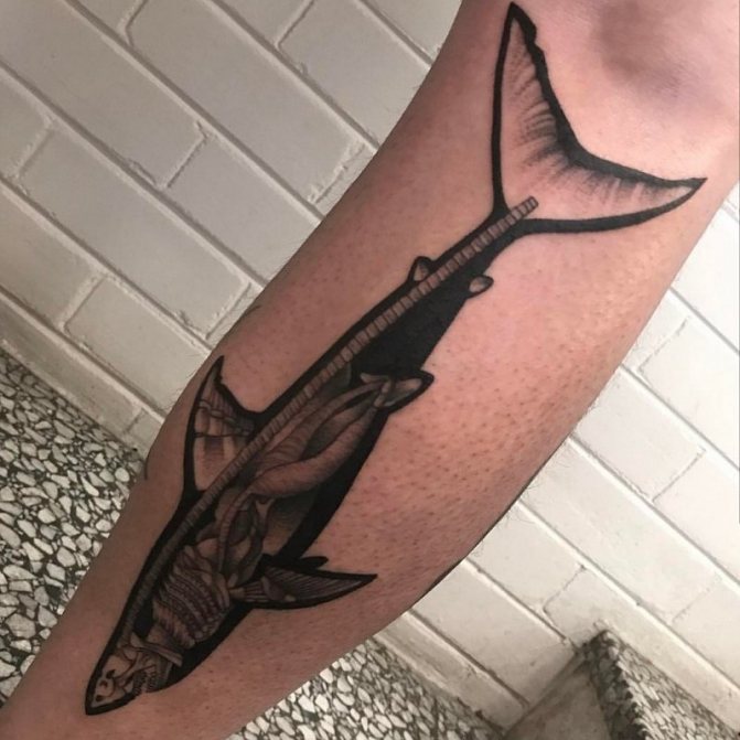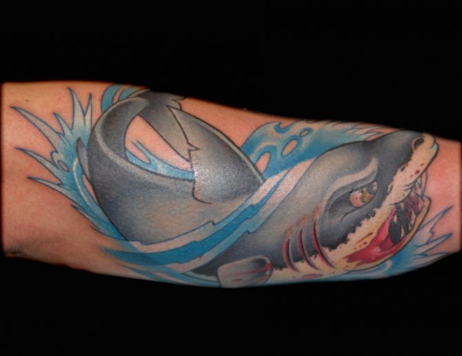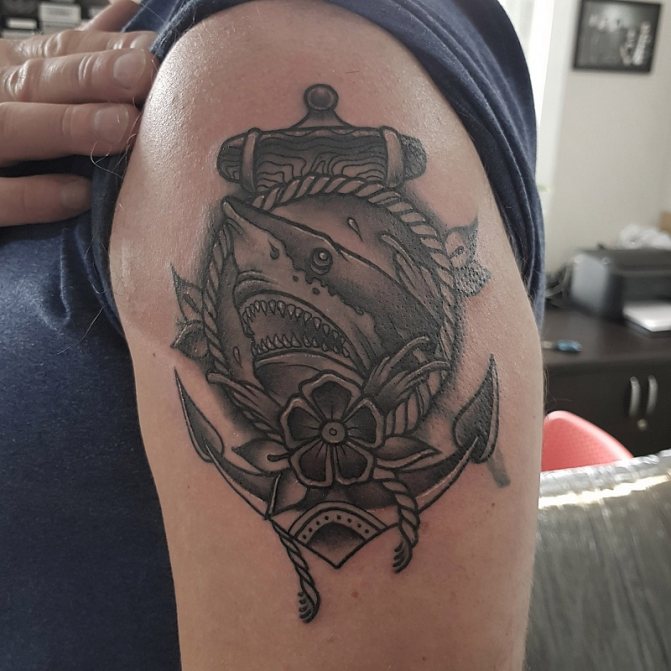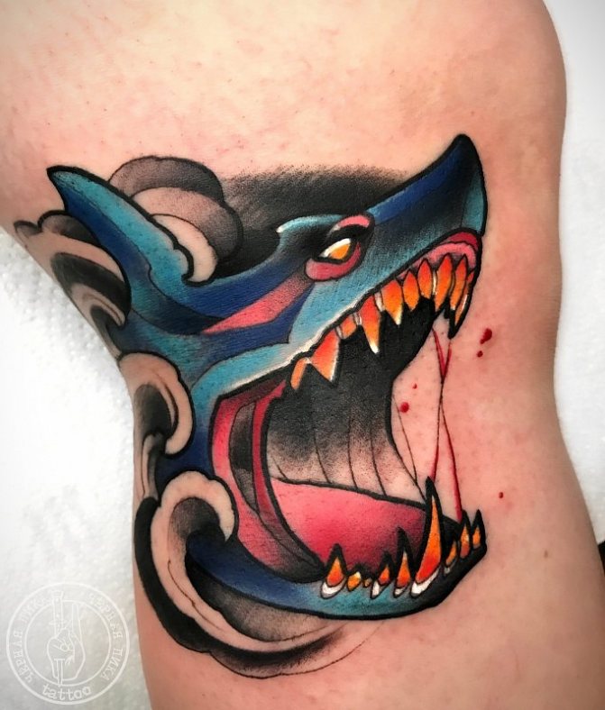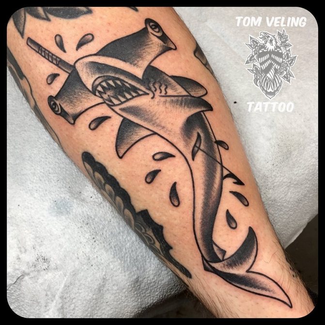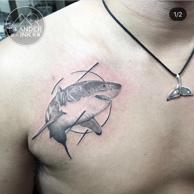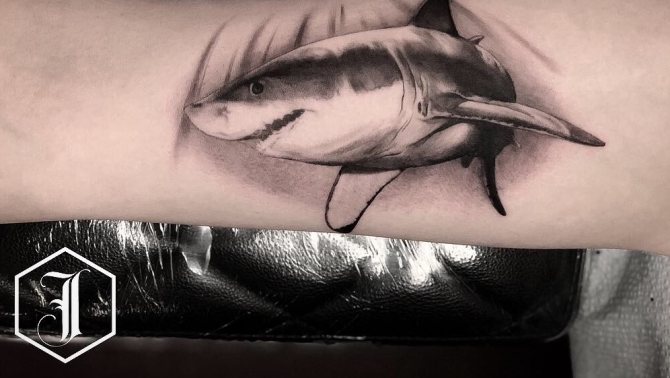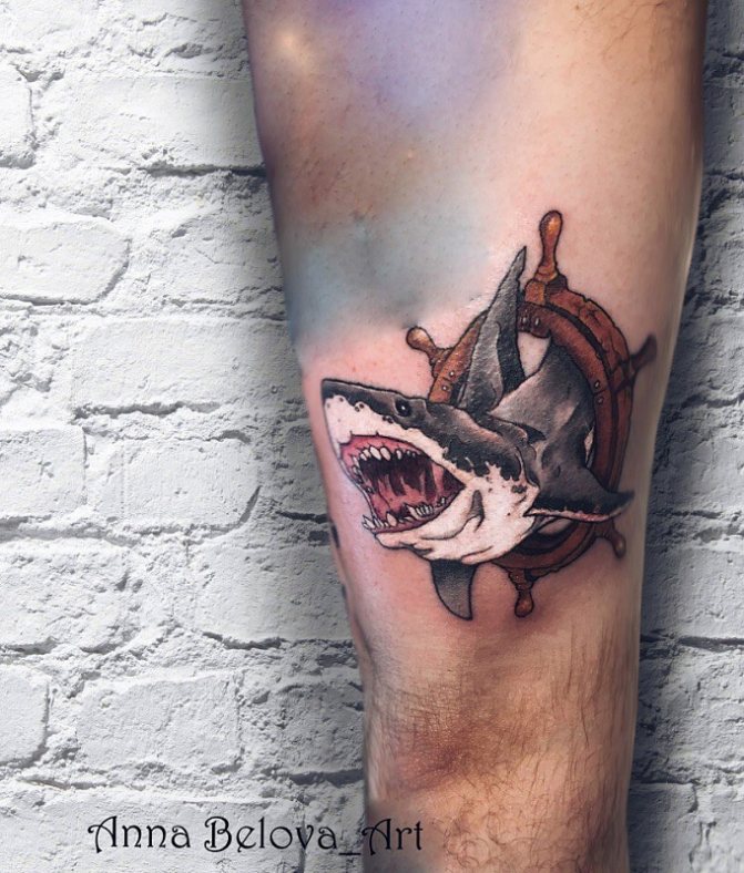 Ne perdez pas de vue le fait que, dans le discours, le mot "requin" est utilisé au féminin, ce qui, pour une fille ou une femme, peut servir de talisman puissant et souligner son utilité et son indépendance. Il convient également de noter qu'une image corporelle avec un requin orne souvent le corps des marins et des amateurs de pêche. Dans ce cas, l'esquisse sert non seulement de signe distinctif des professions maritimes, mais témoigne également du courage et de l'intrépidité de son propriétaire.