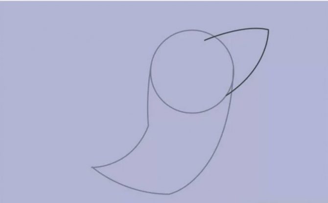 - Pas à pas, avec un crayon, continuez la ligne du haut et du bas du corps jusqu'à la queue.