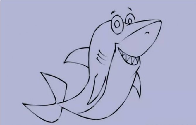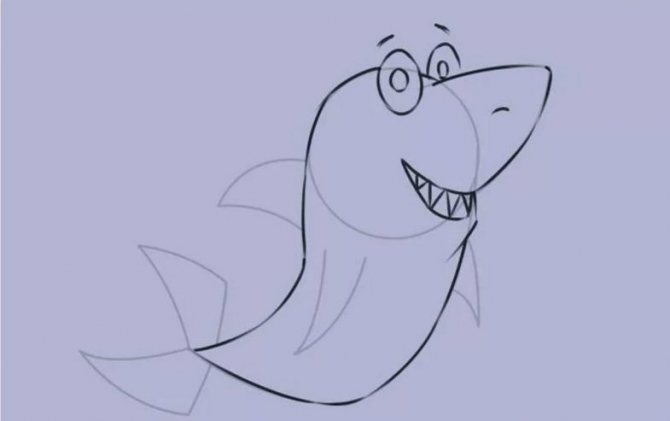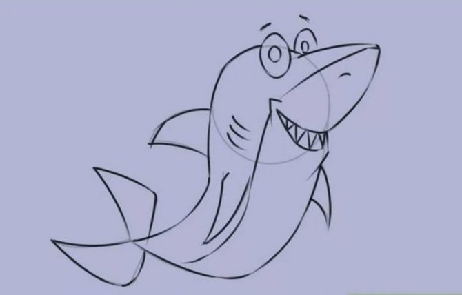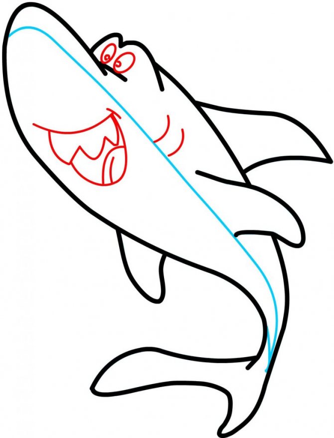 - Avec un léger mouvement des lignes, commencez à façonner les ailerons, la bouche et l'œil du requin.