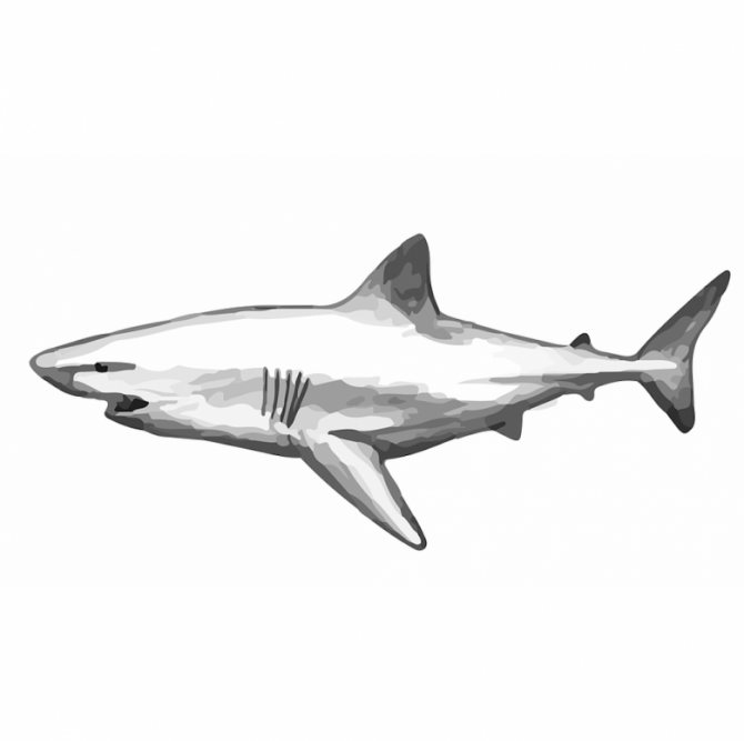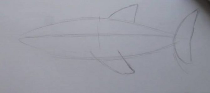 - Commencez par dessiner le corps du requin. Sélectionnez la forme et la taille souhaitées. Appliquez des touches préliminaires.