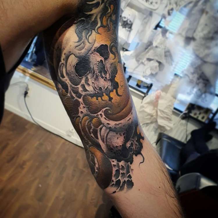 Le choix d'un crâne est le travail d'un tatoueur professionnel. Le crâne est une variante de tatouage proéminente et accrocheuse, pour cette raison, il est difficile de passer inaperçu lorsqu'on l'applique sur un espace ouvert.